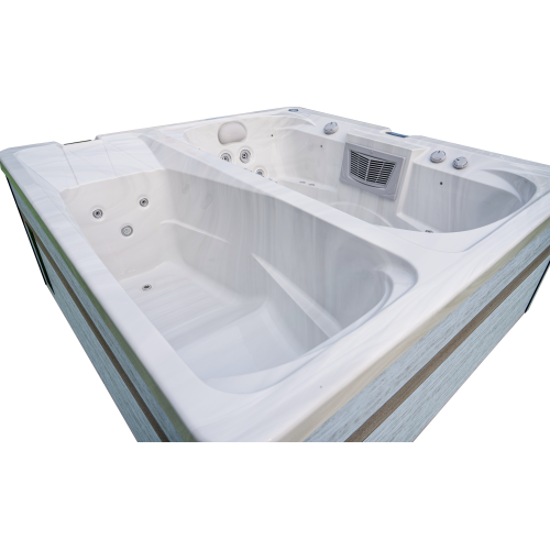 The Marquis Hot and Cold Spa combines the benefits of a relaxing hot tub session with the invigorating effects of a cold plunge giving you the best of both worlds in a contrast therapy tub. This unique hydrotherapy experience allows you to restore and rejuvenate your body from the outside in. The hot tub will seat 2 people comfortably and will get up to 104° Fahrenheit. The Cold Plunge bathing well allows for temperatures down to a chilly 37° Fahrenheit. The hot tub includes 31 adjustable jets powered by an efficient 3 hp pump plus a separate circulation pump to keep the water clear while not in use. This well equipped hot and cold spa also features LED cupholders, LED fountains on the hot side and underwater LED lighting on both sides. An insulated spa cover with UV guard and premium steps are included making the Marquis a premier value for those seeking the best recovery and rejuvenation tub on the market.