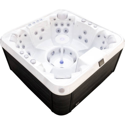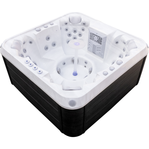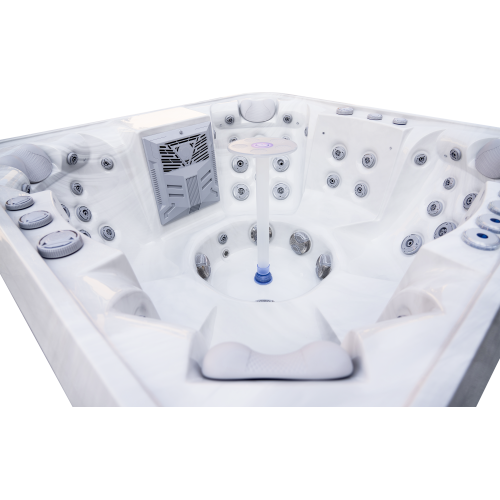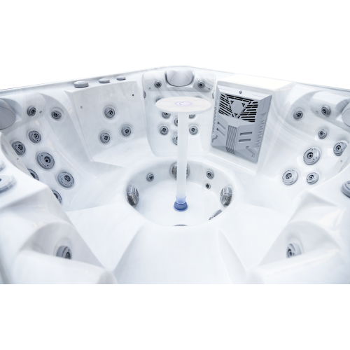 The Denali 7-person luxury spa with silver white marble
